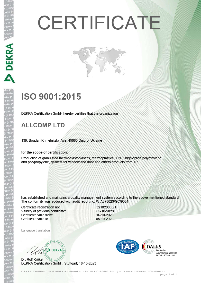 ALLCOMP. Manufacturer of polymer compounds, Dnipro, Ukraine